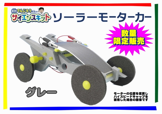珍しいソーラーパネルを使用したソーラーモーターカー 走り方も『出だし重視』『スピード重視』の2種類楽しめます。 作り方も簡単で接着剤など使いません。 でんじろう先生の実験キットの中ではダントツの1番人気商品です。 2010年グッドデザイン賞受賞 【内容物】ソーラーパネル ボディシート タイヤ タイヤ固定部品 ギア キャップギア クリップ付モーター ワッシャー ストロー(太・細) シャフト(竹ひご) 説明書
