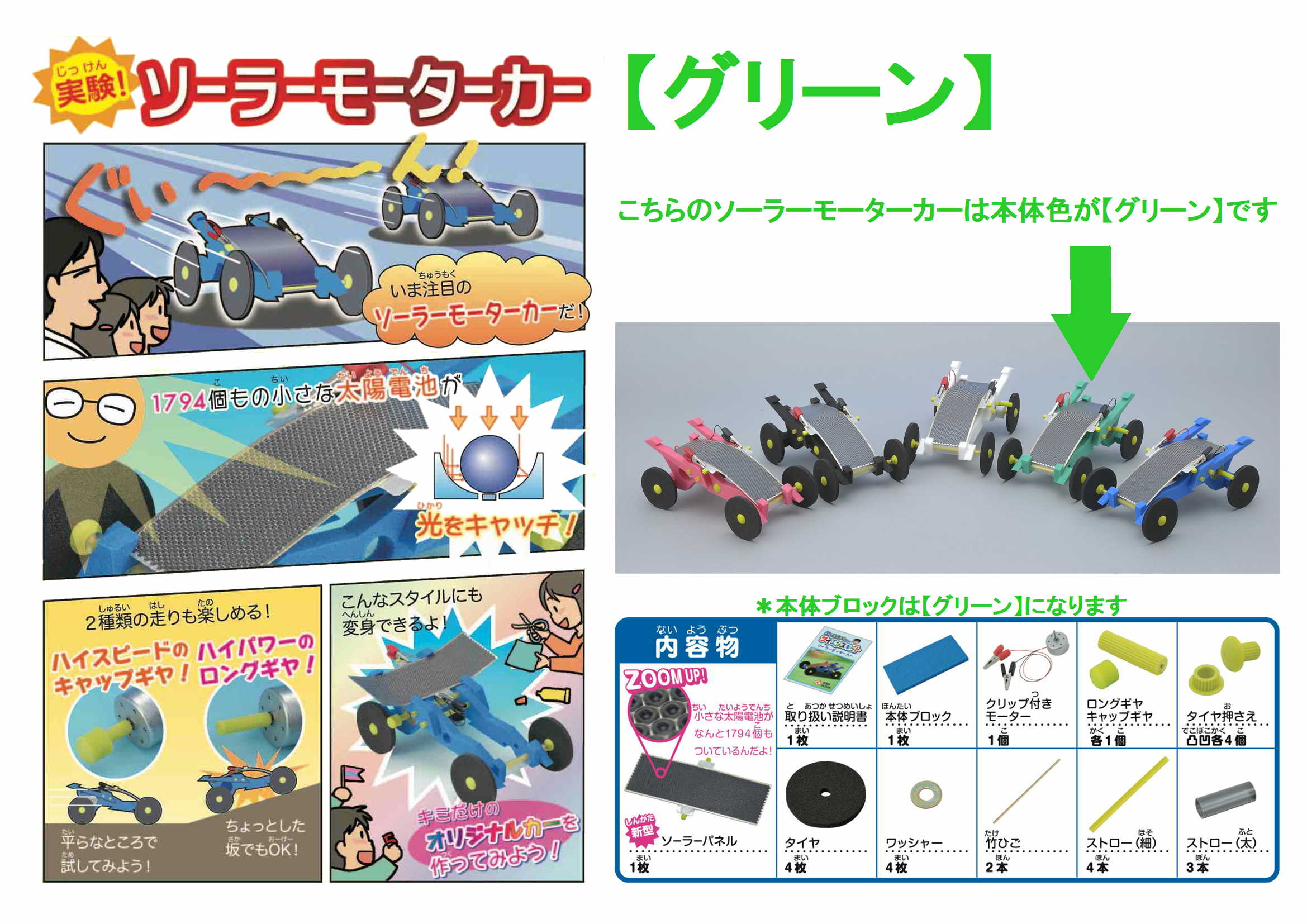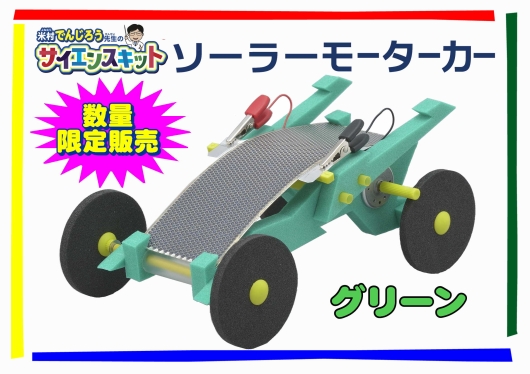 珍しいソーラーパネルを使用したソーラーモーターカー 走り方も『出だし重視』『スピード重視』の2種類楽しめます。 作り方も簡単で接着剤など使いません。 でんじろう先生の実験キットの中ではダントツの1番人気商品です。 2010年グッドデザイン賞受賞 【内容物】ソーラーパネル ボディシート タイヤ タイヤ固定部品 ギア キャップギア クリップ付モーター ワッシャー ストロー(太・細) シャフト(竹ひご) 説明書